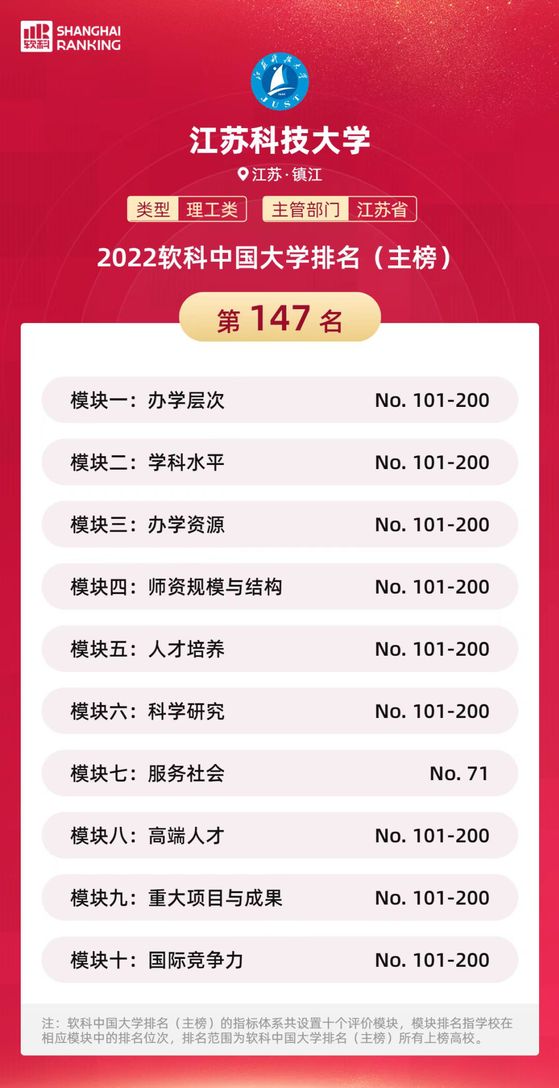 “2022软科中国大学排名”对象是中国1000多所本科层次的高校,评价体系设置了十大评价模块,细分36个评价维度,内设104项评价指标,涉及320个评价变量,是对中国大学办学水平的立体化监测式评价。