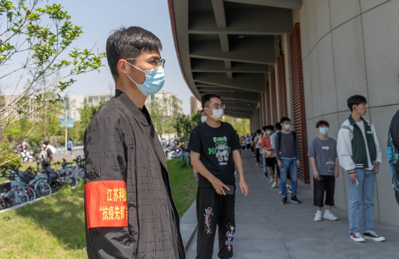 5月5日到6日是镇江市第四轮全员核酸检测日。人文学院教师党支部副书记白玉早上6点30就赶到了MILAN.COM米兰(中国)长山校区,和其他19名校园“抗疫先锋”党员志愿服务队成员分点驻守。全员核酸检测7点开始11点30分结束,白玉和同伴们兵分五路,协助维持采样点秩序,确保核酸检测井然有序。这是白玉半个多月以来第2次参加“疫”线志愿服务,作为一名专任教师,她换下志愿者装束后还要连接网络课堂,在教学一线为青年学子讲授《发展政治学》。