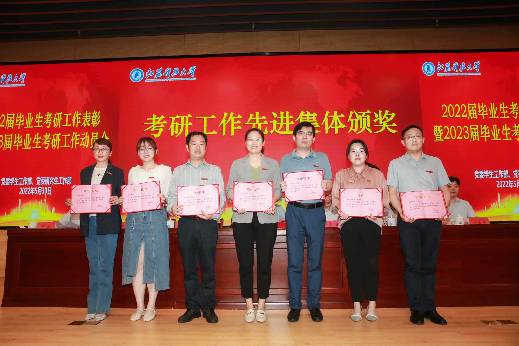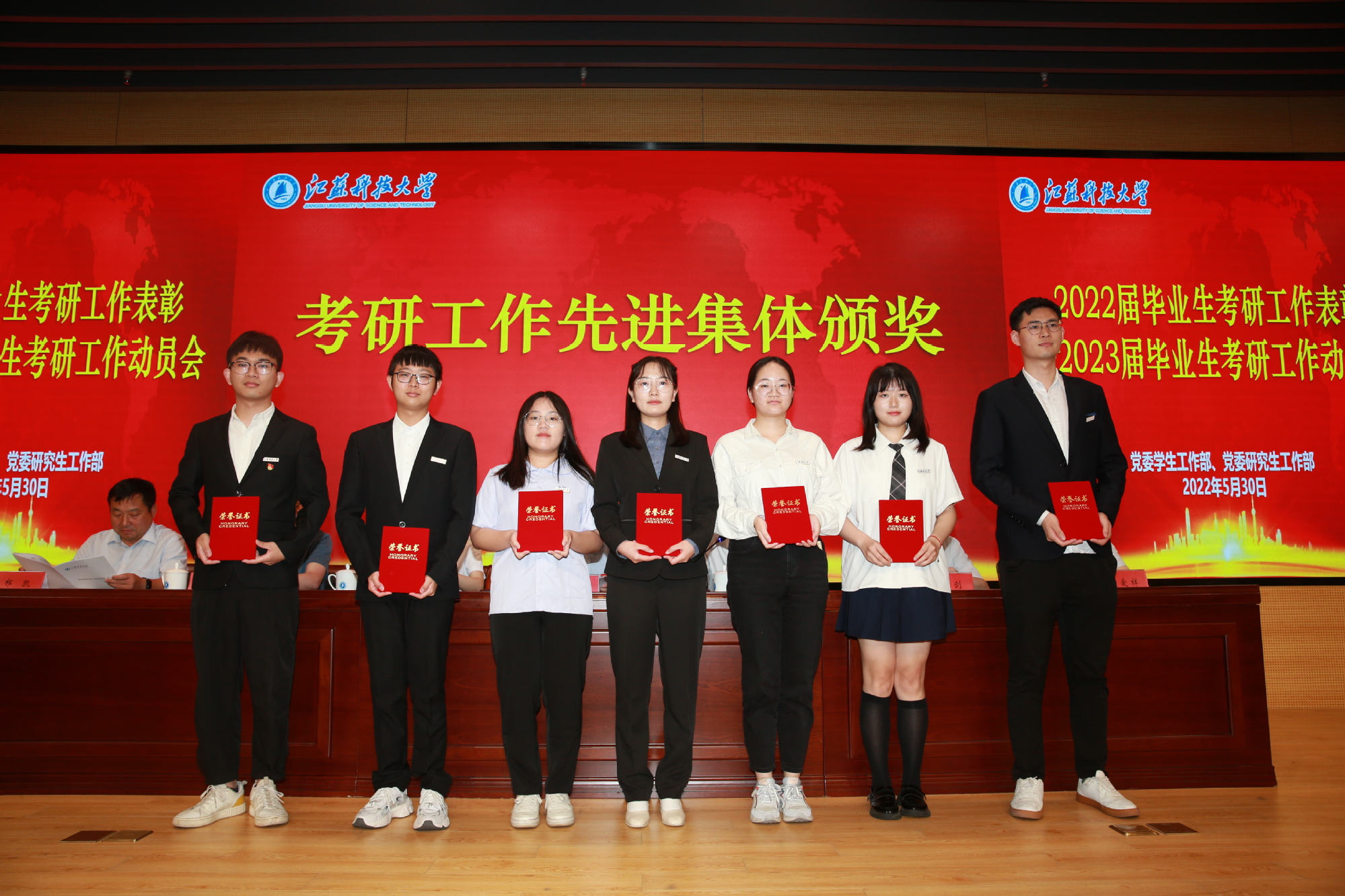 会上,学生处处长胡爱祥总结了2022届毕业生考研整体情况,部署了2023届毕业生考研指导工作。报告指出,我校2022届毕业生考研指导工作取得喜人成绩,考研报考率、初试达线率、最终录取率均稳步提升。截至5月30日,考研录取人数为1179人,录取率为28.78%,其中境外高校留学人数62人、“双一流”高校录取人数611人;深蓝学院深蓝班、粮食学院、材料学院等8个学院考研录取率超过29%;能动学院、船海学院、电信学院等10个学院的考研录取率较2021届有所增加,其中能动学院增幅最大,录取率比2021届增长14.44个百分点;10个班级的考研录取率超过50%,其中材料学院金属材料(腐蚀与防护方向)录取率达到65%;20个宿舍实现全员录取。报告指出,分析工作,总结经验,我校当前的考研指导工作仍存在三个方面的不足,具体体现在:人才培养与考研指导融合度需要进一步加强,考研指导实效性有待提升;学生学业基础与目标定位匹配度需要进一步提高,院校选择精准性有待提高;学校高质量发展对出国留学带动不够,学生培养国际化有待进一步加强。在对未来的工作规划中,报告提出,未来将强化培养学生的科研创新能力,不断提升学生考研竞争力;不断增强工作方法创新性,提升指导工作针对性;加大考研服务支持度,提升指导工作满意度。