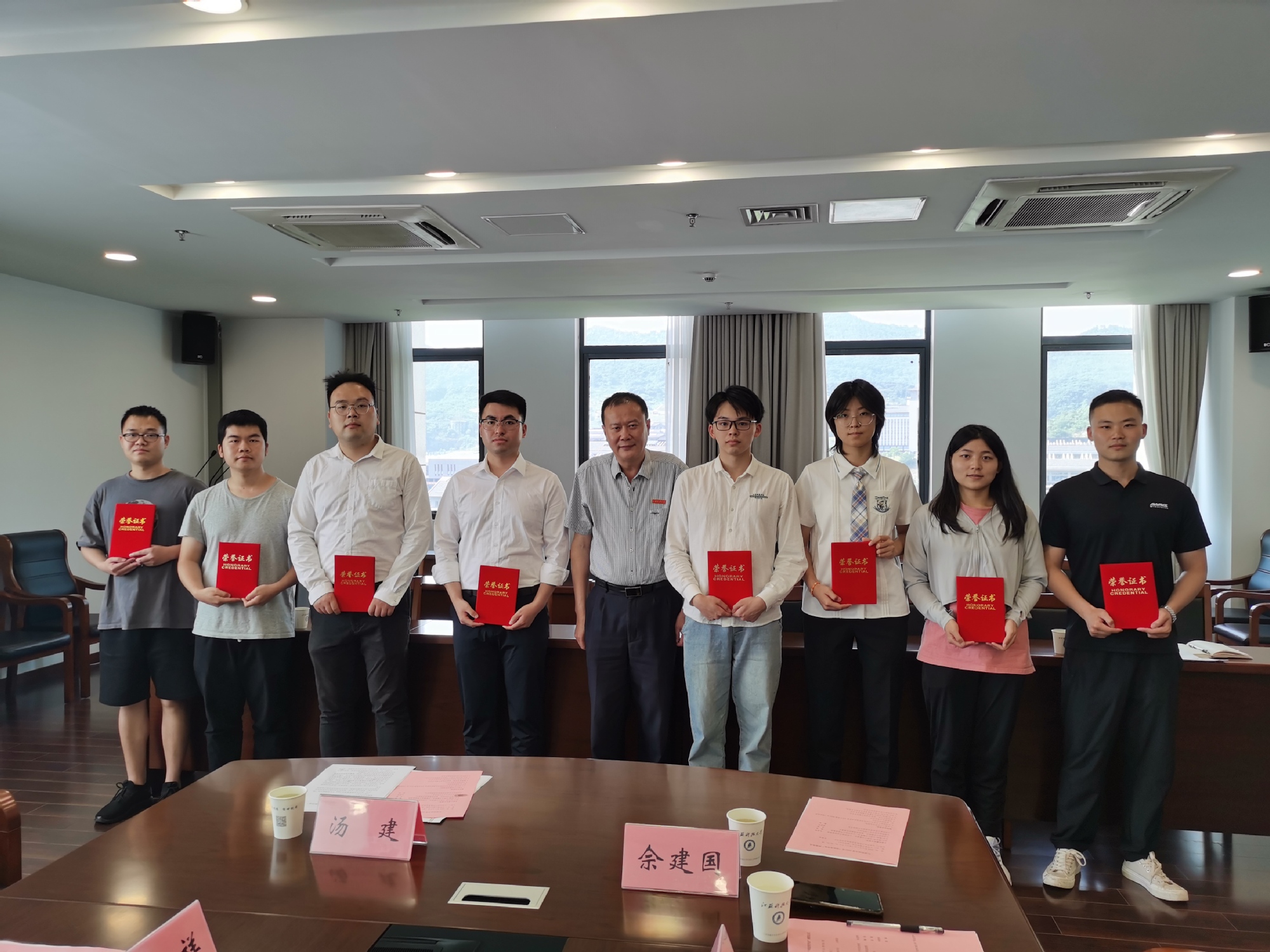 学生处处长胡爱祥宣读《关于表彰2022年度“明波奖学金”获奖者的决定》;获奖学生代表、2022届深蓝学院周天赐同学作为获奖学生代表发言;党委常委、副校长汤建为10位获奖同学颁发证书,并合影留念。