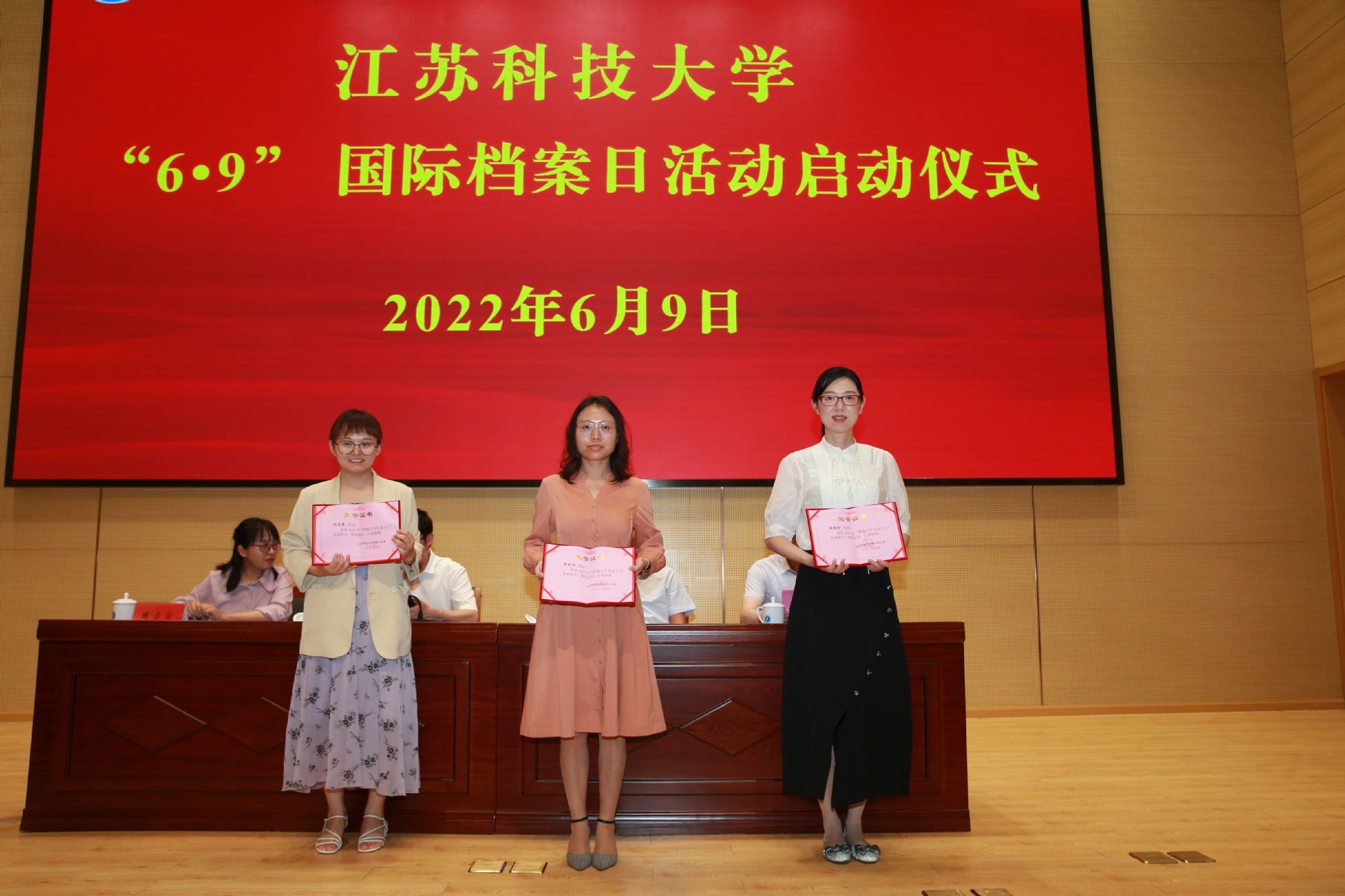 会上表彰了我校2021年档案工作先进个人,李强天、范磊等领导为李红兰等17名“2021年度档案工作先进个人”颁奖。