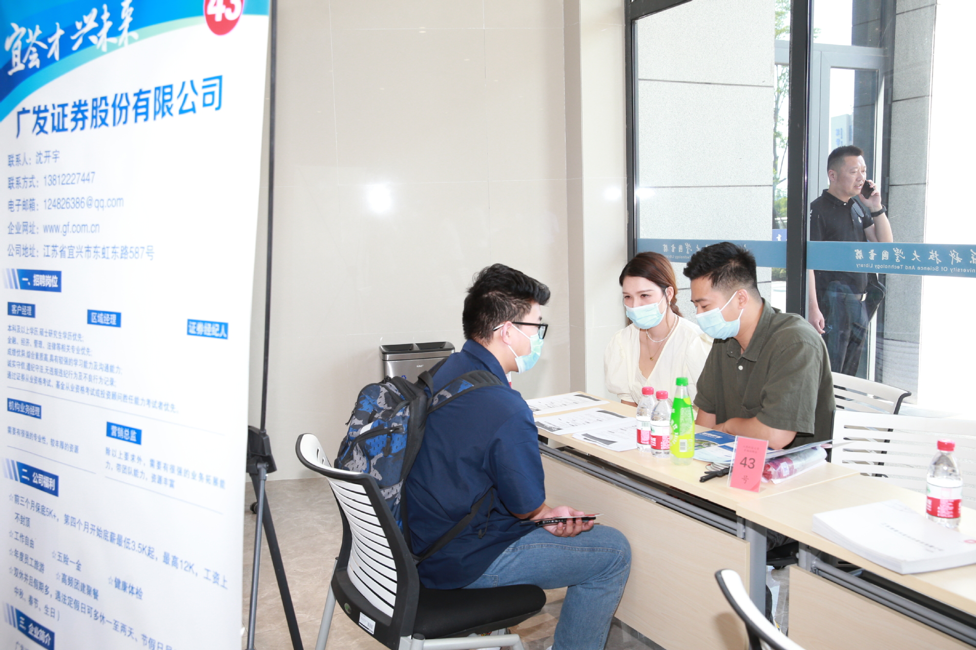 启动仪式后,宜兴专场招聘会在学校长山校区图书馆报告厅举行,44家企业开展现场招聘。