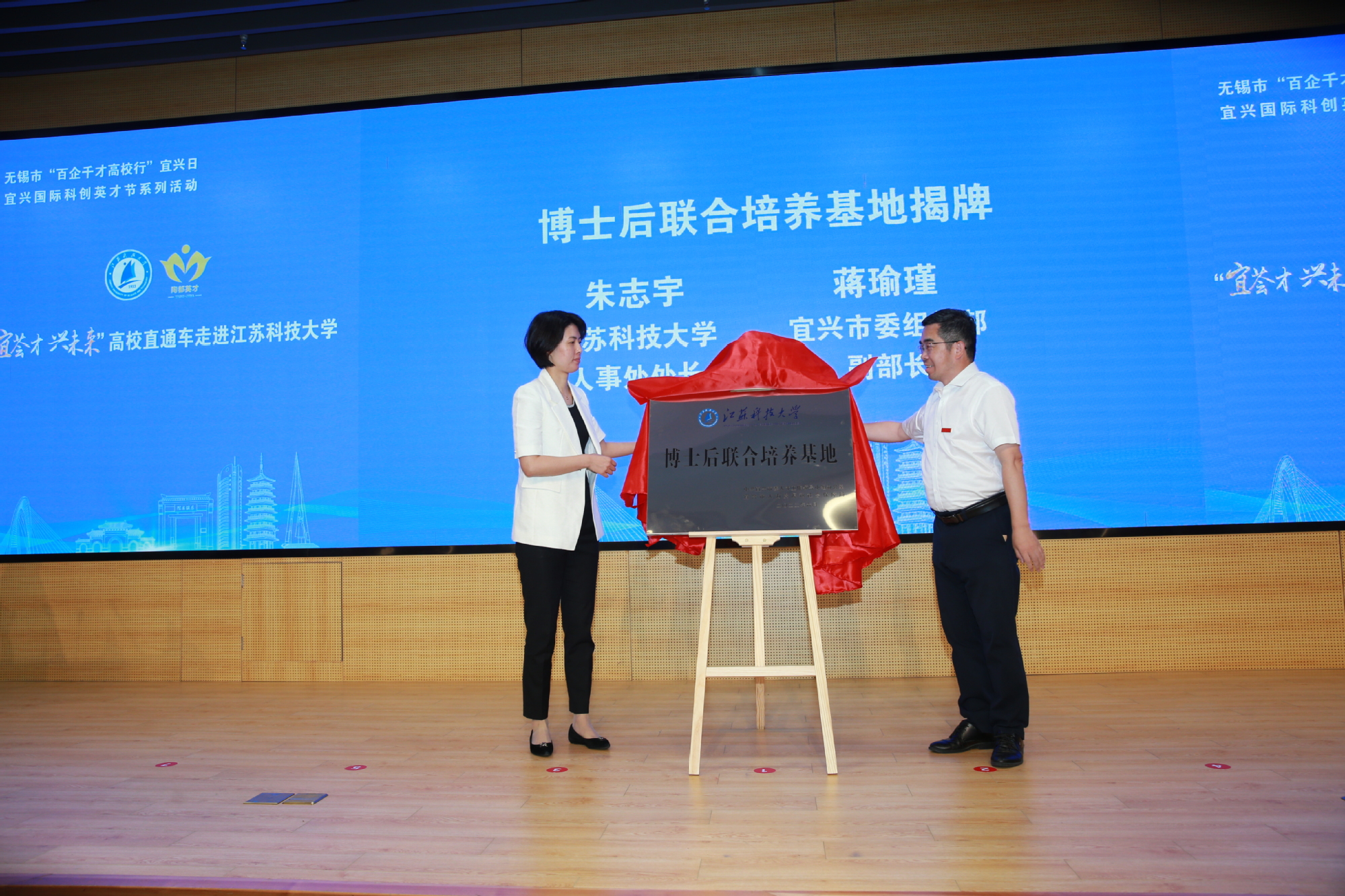 活动中,宜兴市科学技术局局长唐其君作宜兴科创发展环境推介,宜兴市人力资源和社会保障局局长花强作宜兴市大学生引进政策推介,学校党委常委、组织部长李恒川和宜兴环科园管委会副主任、高塍镇党委书记周雪强为宜兴市高校人才工作站揭牌,学校人事处处长朱志宇、宜兴市委组织部副部长蒋瑜瑾为博士后联合培养基地揭牌,学校学生工作处处长胡爱祥为5家企业进行大学生实习就业基地授牌,学校研究生院常务副院长王俊为5位企业家颁发硕士研究生实践导师聘书,学校党委研究生工作部部长祁凯为7位企业人力资源经理颁发大学生就业指导员聘书,宜兴重点企业代表陶都科技新城、鹏瑶环保、亨鑫科技等单位作推介,最后进行了2022“宜荟才 兴未来”宜兴市—MILAN.COM米兰(中国)直通车启动仪式。