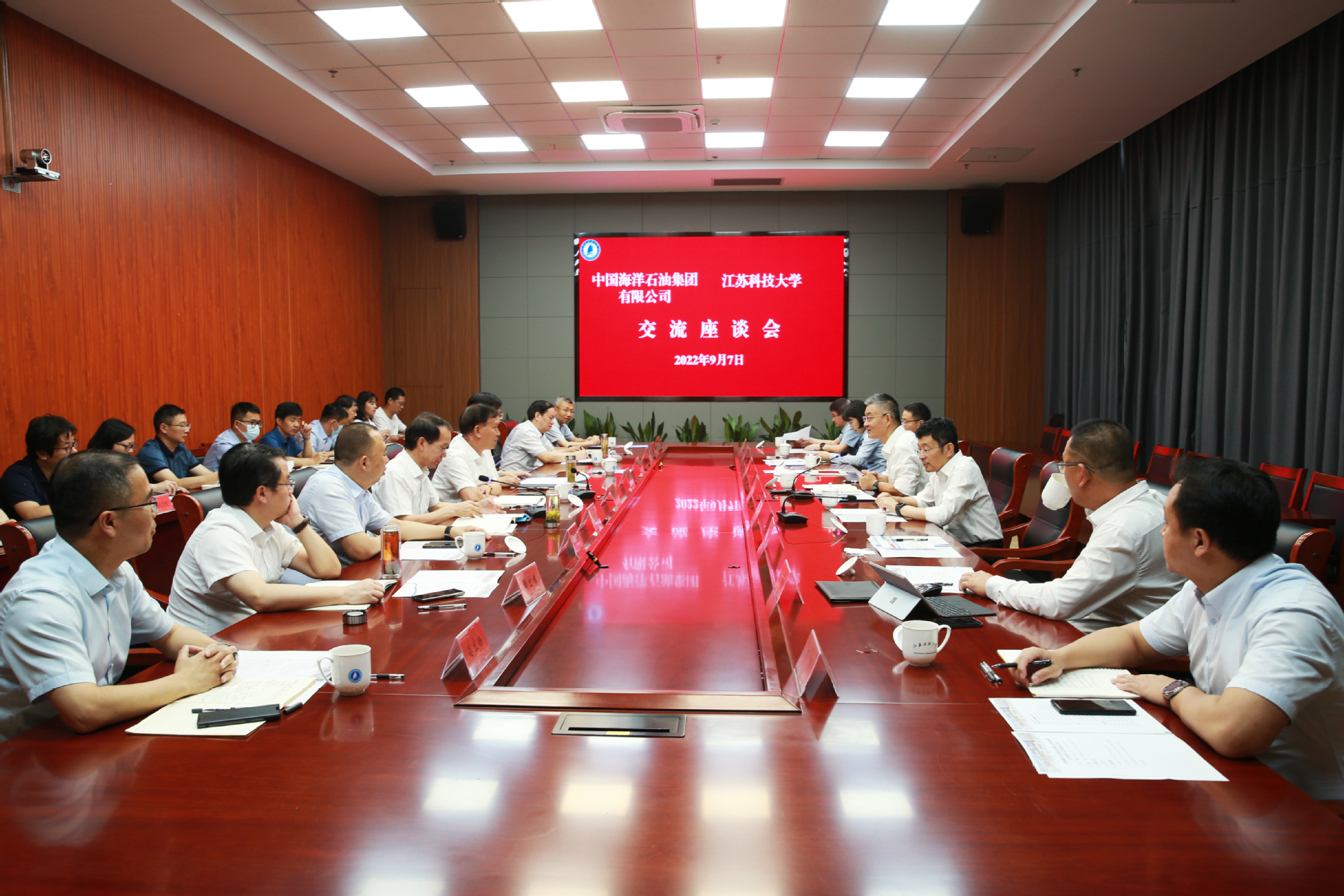 9月7日上午,中国海油科技信息部总经理周建良一行来校考察,就开展人才培养、科技创新等合作进行交流座谈,形成广泛共识。中国海油科技信息部副总经理单彤文,镇江市政府党组成员黄万荣,校党委书记葛世伦出席交流座谈会。副校长王加友主持座谈会。