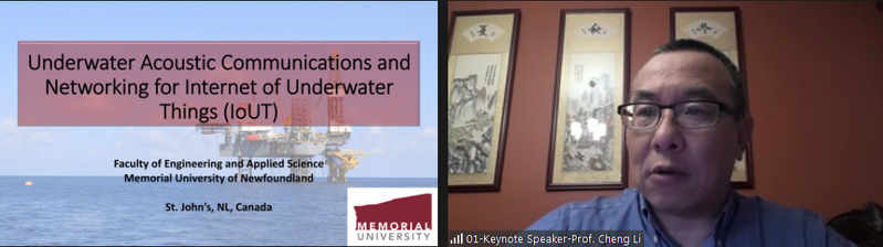 会议上,加拿大卡尔加里大学Henry Leung教授(IEEE Fellow)、浙江大学徐敬教授(国家级人才)、加拿大纽芬兰纪念大学Cheng Li教授分别作了主旨报告,围绕自动驾驶、水下光通信、水声通信网络进行了交流与讨论。英国利兹大学Li Zhang教授等15名国内外专家学者作了特邀报告。