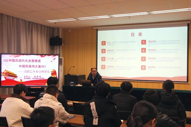 人文社科学院副院长汤向俊为自动化学院师生作报告。汤向俊结合党的二十大报告的战略定位、大会主题等内容,横向对比我国与各国现代化道路方式,总结归纳出中国式现代化道路的“生成逻辑”“时代价值”“推进路径”。