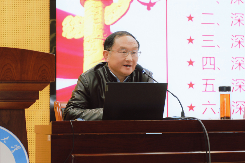 马克思主义学院教授姚允柱在继续教育学院作了题为《新时代 新征程 新思想 新战略——拥护“两个确立”,务实团结奋斗,以中国式现代化全面推进中华民族伟大复兴》的党的二十大精神领学报告。提出要把学习成效转化为贯彻党的二十大精神的实际行动,在全面建设社会主义现代化国家的新征程中,踔厉奋发、勇毅前行,推动学校实现高质量发展。
