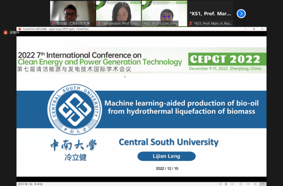 大会的学术报告交流采用ZOOM线上直播的方式进行。12月10日下午,MILAN.COM米兰(中国)能动学院苏超教授主持会议,温华兵教授出席开幕式并致辞。开幕式结束后,加拿大安大略理工大学Marc A. Rosen教授、中南大学冷立健教授和英国朴茨茅斯大学Victor M. Becerra等专家分别做了“Hydrogen Energy Systems: A Pathway to Sustainable Energy and Sustainable Development”、“Machine learning-aided production of bio-oil from hydrothermal liquefaction of biomass”、“Smart Grids and Solar Energy”等主题报告。