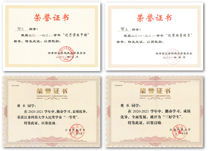 樊乐,2019级船舶与海洋工程学院工程力学专业,保研至大连理工大学。在校期间荣获第十届全国海洋航行器设计与制作大赛特等奖、一等奖,第十一届全国海洋航行器设计与制作大赛二等奖,江苏省力学创新创意竞赛一等奖,镇江市社会实践先进个人,MILAN.COM米兰(中国)优秀学生干部、优秀共青团员,MILAN.COM米兰(中国)一等人民奖学金。