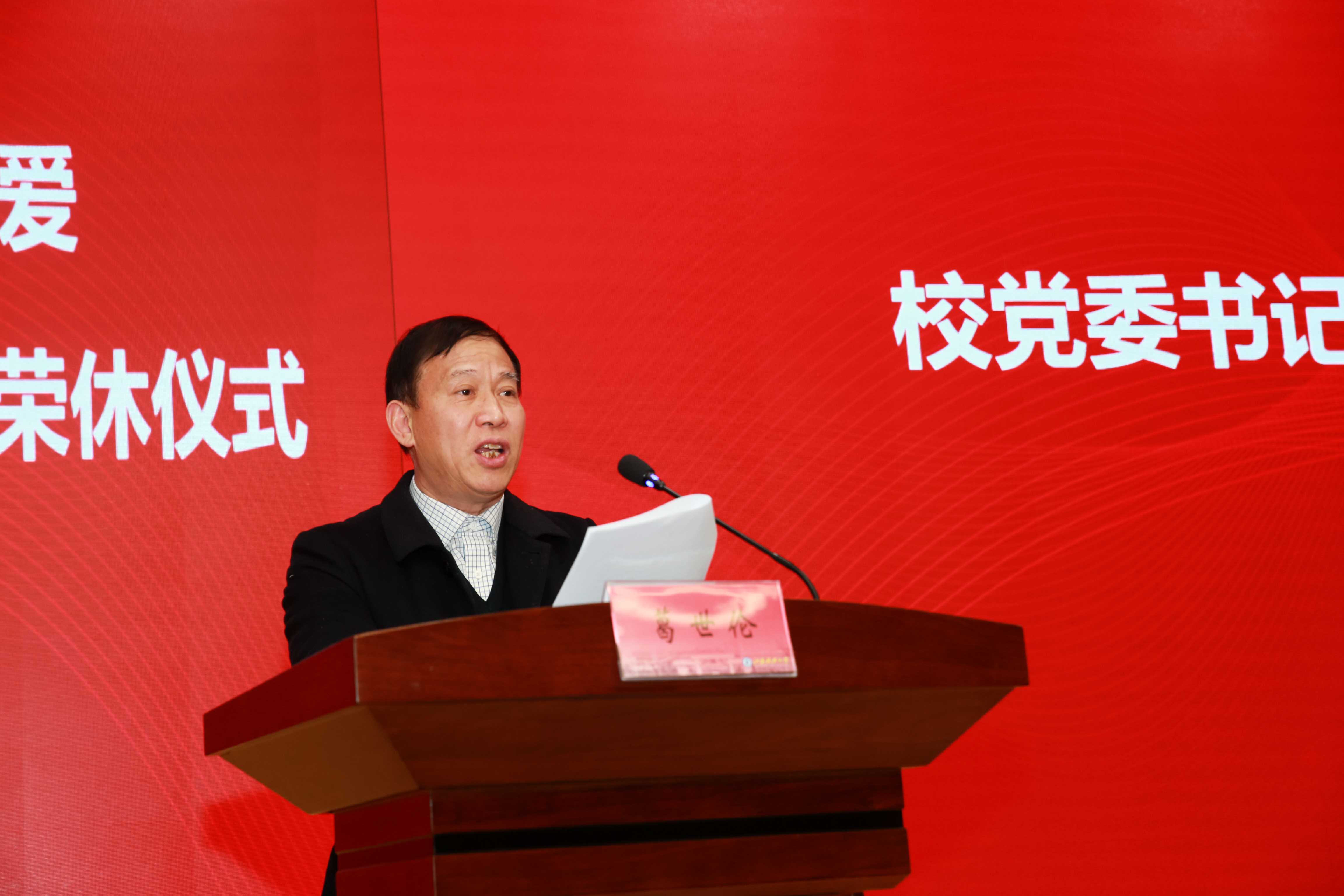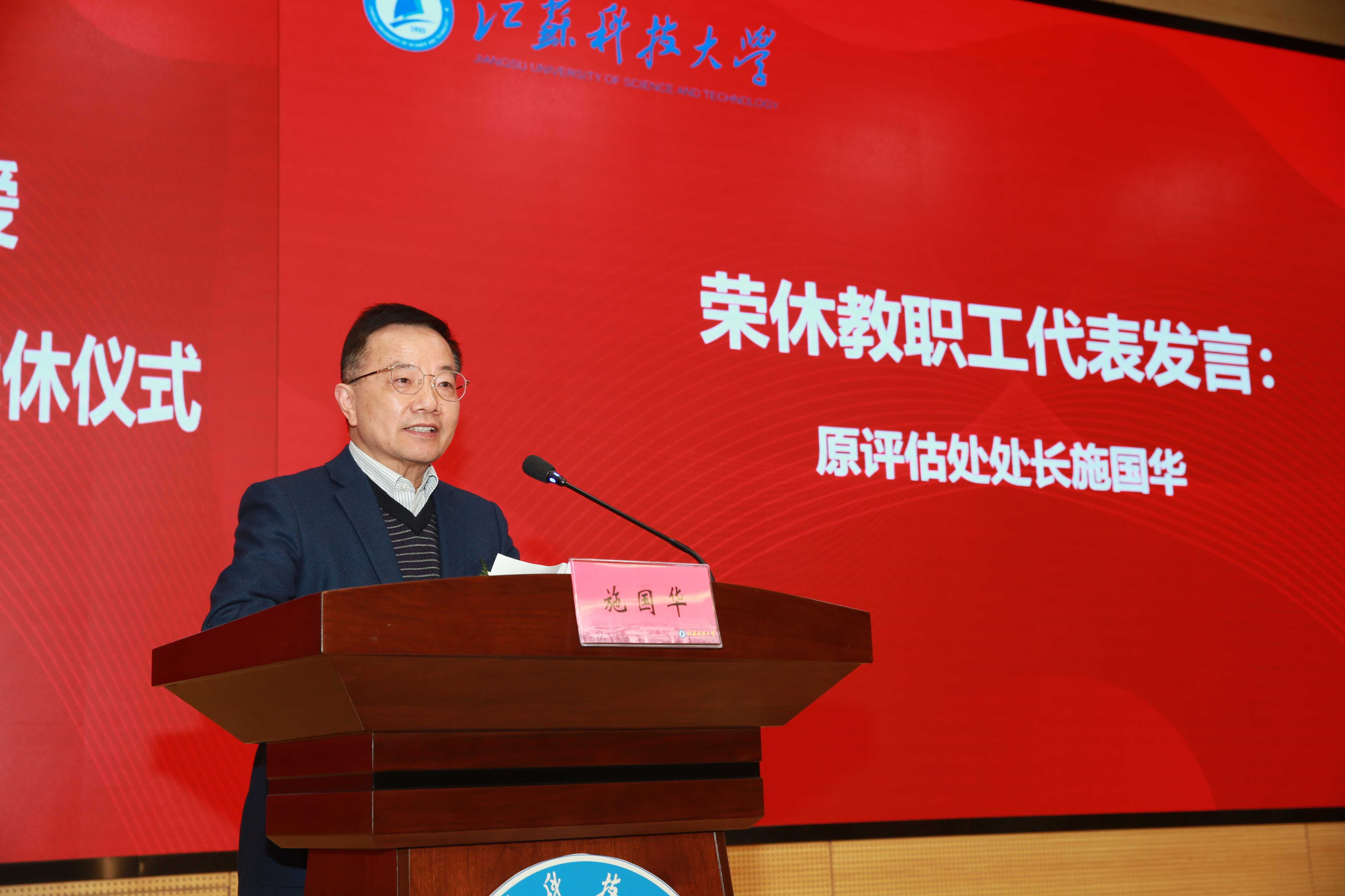 校党委书记葛世伦在致辞中诚挚祝贺各位老师光荣退休,并衷心感谢老师们多年来在学校教学、科研、管理和服务工作中的辛勤付出。他表示,对学校而言,荣休教师是学校事业发展的亲历者、建设者和贡献者,用情怀生动诠释了“江海襟怀、同舟共济、扬帆致远”的“船魂”精神,永远是江科大事业发展共同体的重要组成部分。学校党委将始终高度重视离退休工作,畅通沟通渠道,用心用情为离退休教职工安享幸福生活创造良好的条件和更加优越的环境。葛世伦寄语教职工,希望荣休教师退休不退志、离岗不离心、卸任不卸责,发挥“传帮带”作用,为学校建言献策,让“船魂”精神薪火相传、荣光接续,希望青年教师虚心向荣休教师请教,不辜负前辈的重托和期许,共同开创学校发展新局面。