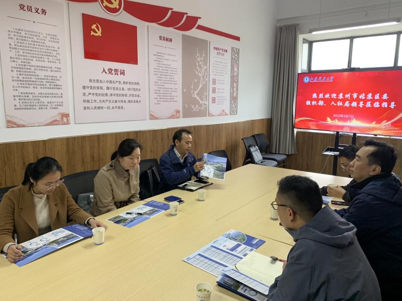 尚静对顾主任一行的到来表示热烈欢迎,并代表学校介绍了近年来校企合作模式与取得的成效,并希望与姑苏区委组织部、人社局携手为推进校地深度对接合作、成立实习基地,聚焦学院专业,精准培养人才,提升学生就业质量搭建平台。