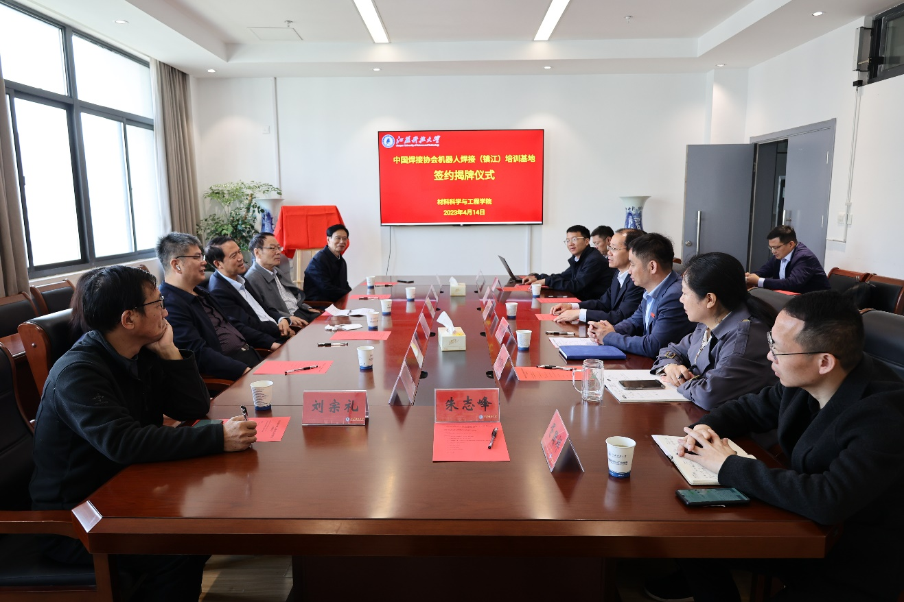4月14日上午,机器人焊接(镇江)培训基地签约揭牌仪式在MILAN.COM米兰(中国)材料学院512会议室举行。中国焊接协会副会长兼秘书长李连胜,中国焊接协会副会长、教育与培训工作委员会理事长、北京工业大学副校长陈树君,中国焊接协会副秘书长吴九澎,中国焊接协会教育与培训工作委员会副秘书长李波,MILAN.COM米兰(中国)副校长王加友出席签约揭牌仪式。南通振康董事长汤子康,南京波长光电公司研发部副主任朱华,固高科技机器人事业部经理刘宗礼,思博睿增强培训中国区经理朱志峰,MILAN.COM米兰(中国)张家港校区苏州理工学院副院长黎文航,新材料及先进焊接技术研究院院长芦笙,材料学院党委副书记杨海涛,副院长陈书锦、王宇鑫、胥国祥等一同见证基地签约揭牌仪式,仪式由材料学院党委书记李瑞峰主持。