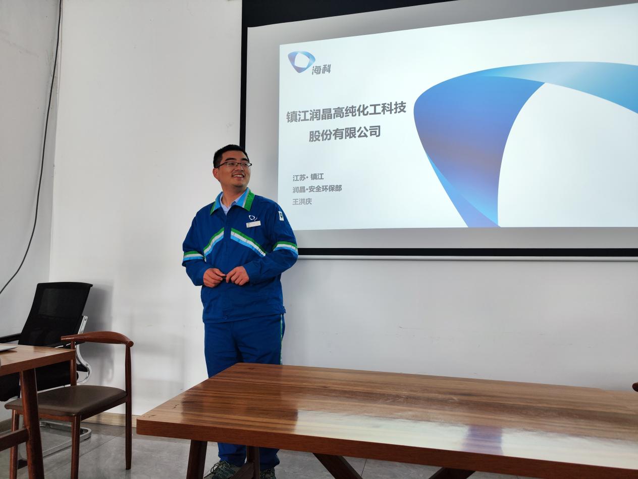 为贯彻落实深蓝学院转型教育“知行合一”的教育理念,搭建校企交流平台,引导学生利用理论知识指导实践,拓宽学生学业生涯和职业生涯规划视野,4月24日下午深蓝学院第二党支部和环境与化学工程学院学生第二党支部组织40余名新生走进镇江润晶高纯化工有限公司开展“环宇润泽,化学致用”2022级环化大类“访企拓知”转型教育实践活动。本次活动由环境与化学工程学院党委副书记王召征带队,深蓝学院环化类辅导员王萌、张威和润晶公司安全部、生产部多位工作人员带领学生参观工厂生产线,了解显影液(TMAH)从原料到成品的整个生产过程。