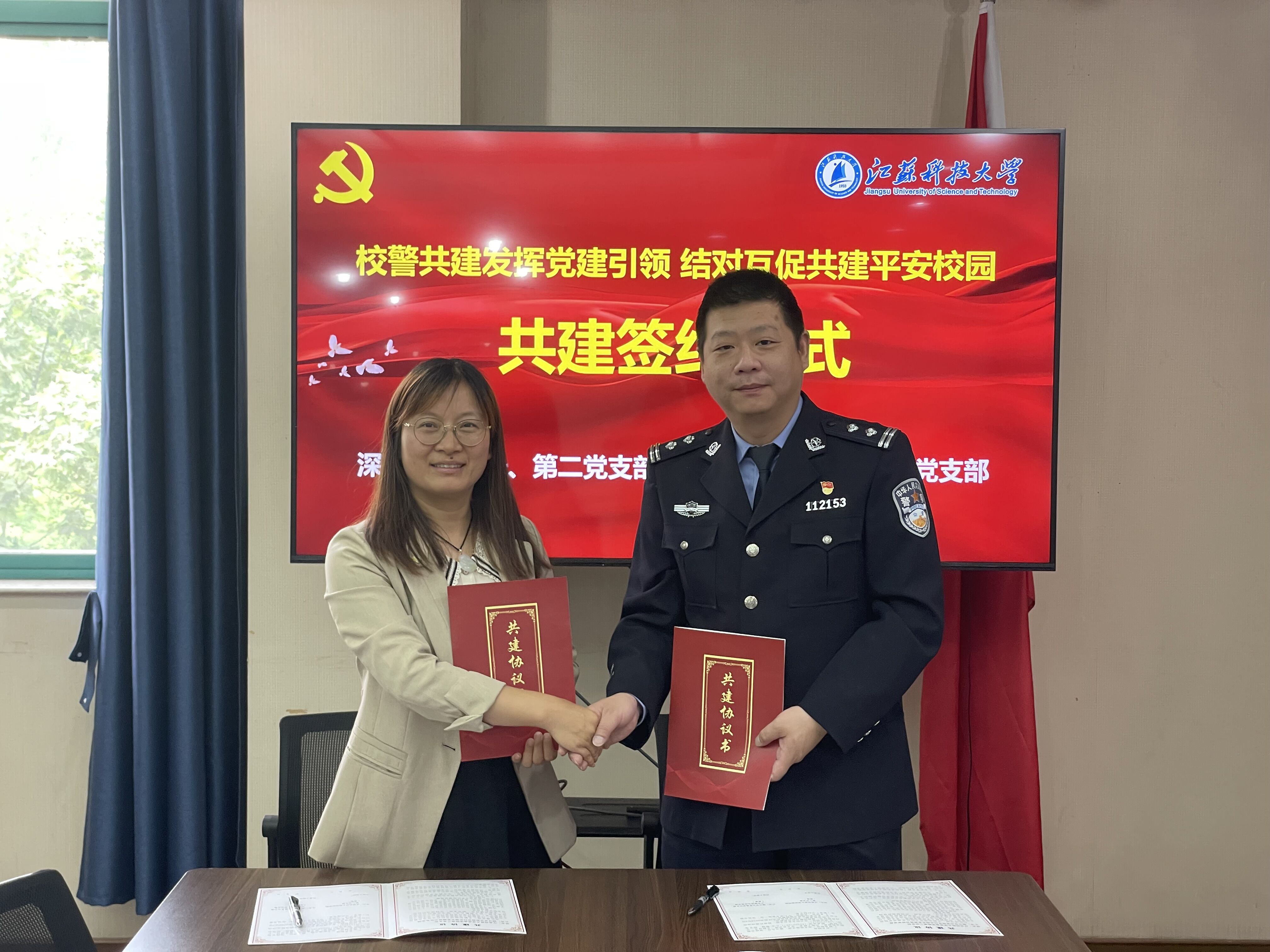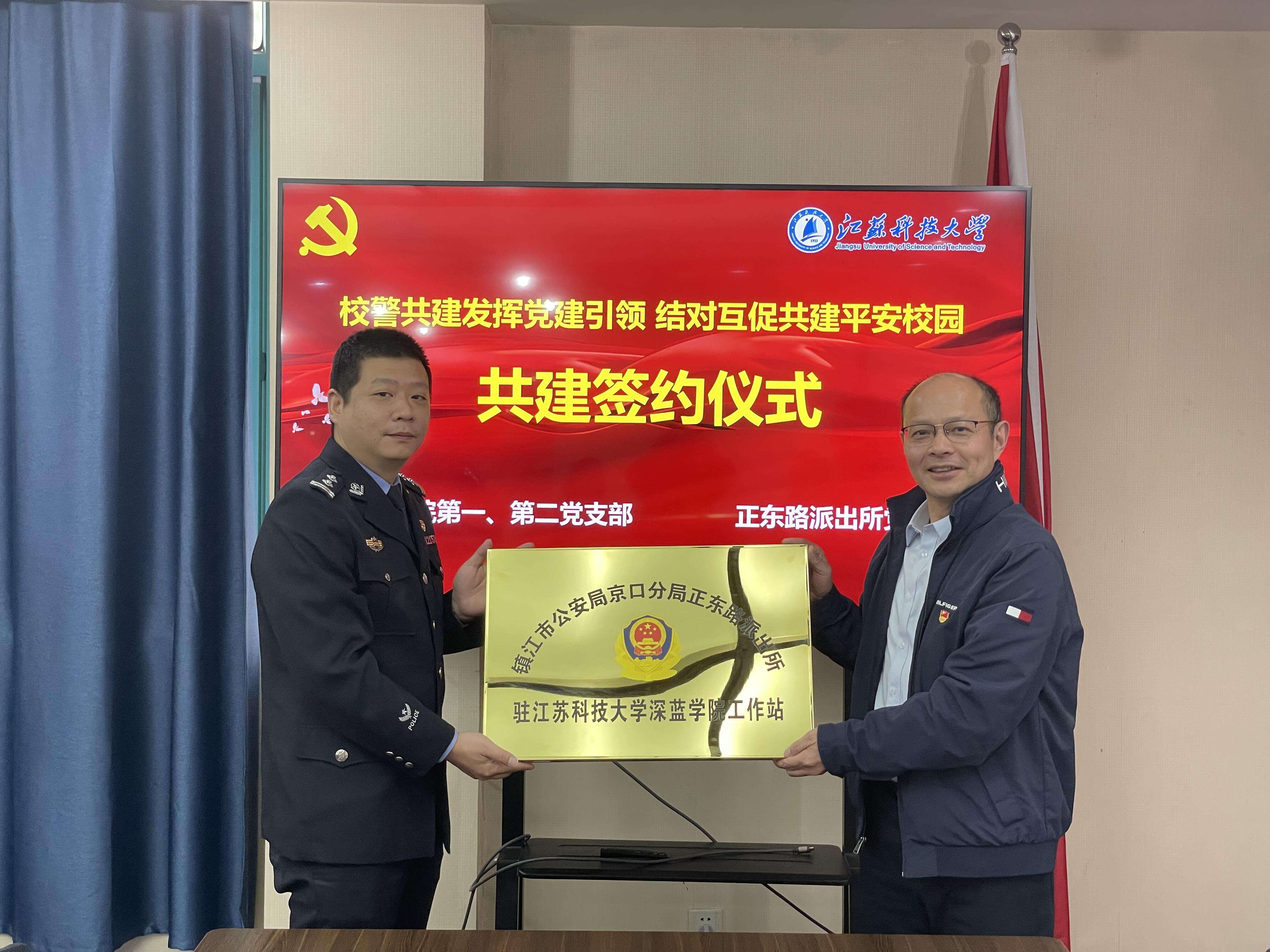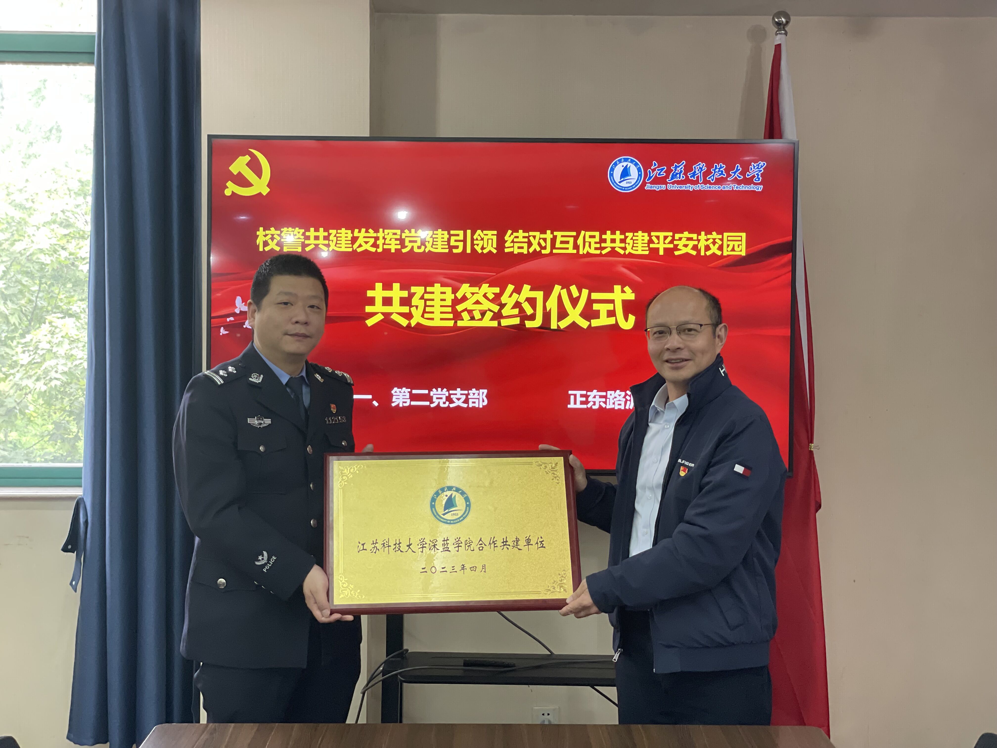 为进一步发挥党建引领作用,筑牢校园安全屏障,强化基层服务型党的组织建设,探索加强组织联建、资源共享的有效途径,4月28日上午,深蓝学院第一、第二党支部与镇江市公安局京口分局正东路派出所党支部在深蓝学院301会议室举行结对共建签约仪式。仪式由深蓝学院党总支副书记秦向荣主持。镇江市公安局京口分局正东路派出所党支部书记兼所长魏越、党支部副书记兼教导员李晓飞、江科大社区民警王刚,深蓝学院党总支书记、院长杨建超、第一党支部书记杜伟伟、第二党支部书记何筠及第一、二党支部全体支委参加了此次活动。