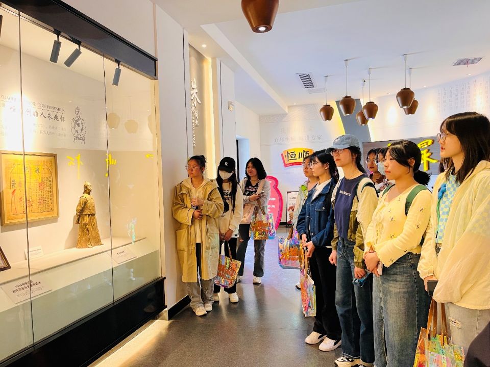 在讲解员的带领与介绍下,同学们了解了醋的古今发展历史、酿造原理、醋的功效、国内外名醋等。产品陈列室中,各种醋产品琳琅满目,近10个国家的数百个醋产品,仿佛置身于醋的世界,许多日常生活调味所用的醋也陈列其中,让同学们倍感亲切。