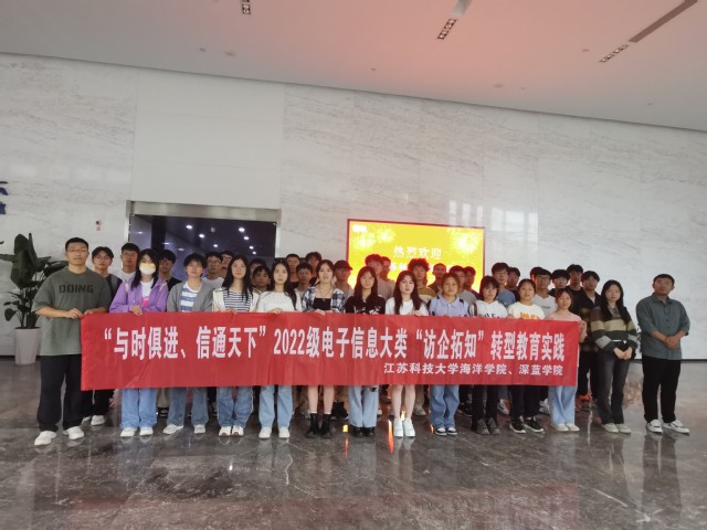 为进一步加强学生们对相关专业的认识,进一步帮助学生明确专业分流志愿,深蓝学院联合海洋学院于4月27日开展了“与时俱进、信通天下”2022级电子信息大类“访企拓知”转型教育实践,活动在南京嘉环科技股份有限公司进行。本次实践由海洋学院凌霖老师带队,深蓝学院有关专业辅导员和2022级电子信息类40名学生参加。