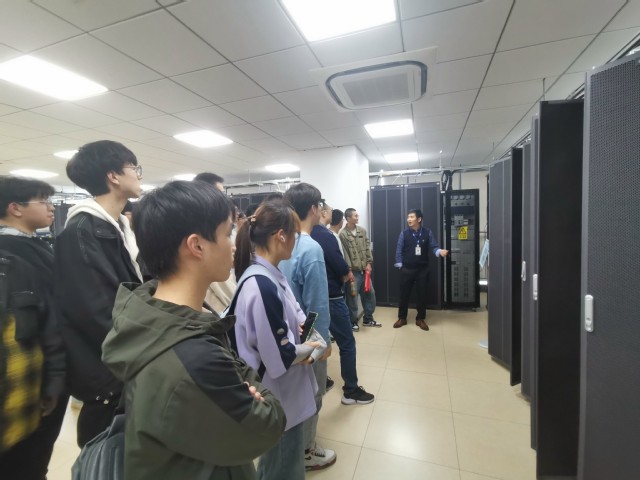 同学们首先在两名企业讲师带领下参观了有限网络、无线网络机房,结合具体设备了解了信息通信技术的相关知识以及当代通信领域诸多科技创新的优越性。