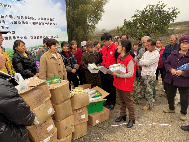 在保种育种的基础上,MILAN.COM米兰(中国)蚕桑科技支农实践团足迹遍布江苏苏北蚕区、广西平果和德保蚕区,向当地蚕农介绍规范的饲养和消毒方法,并赠送研究所培育的针对广西高温多湿气候环境的优质蚕种和蚕药。
