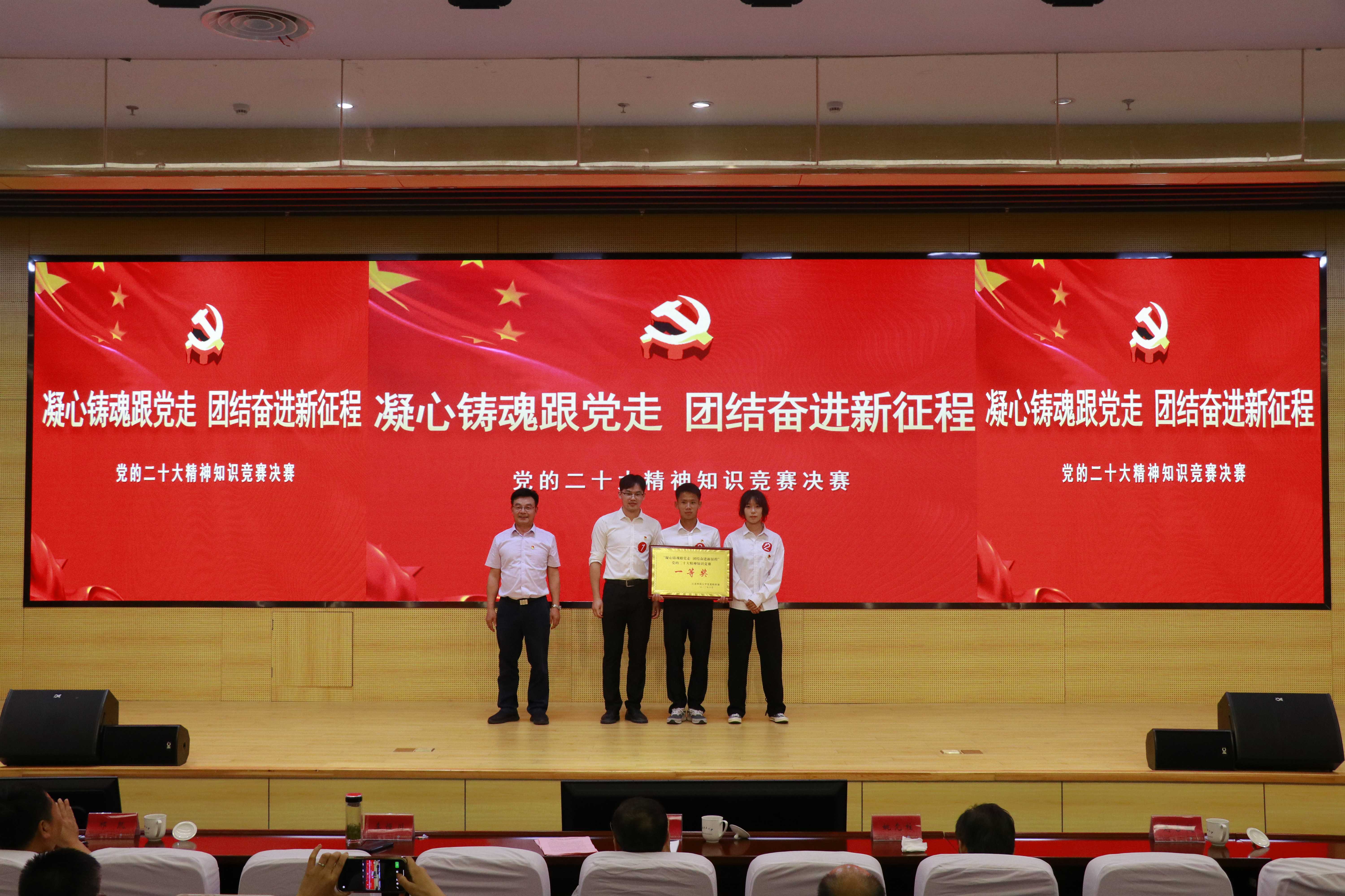 赛前,汤建致辞,他表示,举办党的二十大精神知识竞赛既是对前期学习成果的一次检验,更是一次接受思想洗礼、坚定理想信念、凝聚发展动力的重要契机。他希望广大同学“学思践悟”党的二十大精神,以理想者、担当者、吃苦者、奋斗者的姿态,奋进新时代,诠释新青春,创造新业绩,唱响以中国式现代化全面推进中华民族伟大复兴新征程上的青春壮歌!