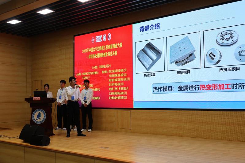 作为首次承办大赛的东道主单位,江科大共有6支队伍,6个项目入围决赛。参赛选手分别围绕热作模具、压铸模具、滚动轴承以及滚珠丝杠等典型零件的选材、热处理技术要求、热处理工艺规范以及设备选型等多个方面展开答辩。