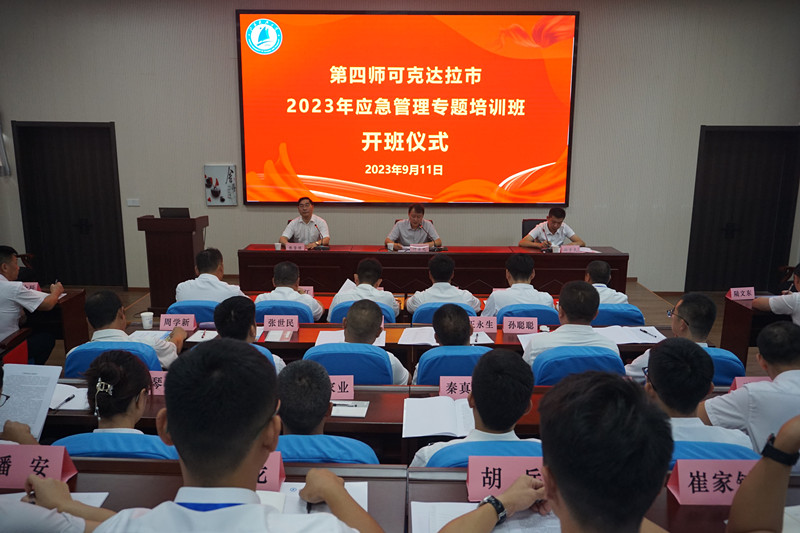 9月11日上午,第四师可克达拉市2023年应急管理专题培训班在我校顺利开班,继续教育学院院长仲崇光,第四师可克达拉市应急管理综合行政执法支队支队长孙学虎出席开班式并讲话,开班式由中国船舶工业工程师继续教育学院院长张坚强主持,共40名学员参加了本次培训。