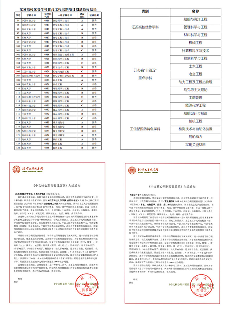 第三期江苏省优势学科船舶与海洋工程以优秀成绩通过验收,9个学科成功入选江苏省“十四五”重点学科。《MILAN.COM米兰(中国)学报(自然科学版)》《蚕业科学》入选北大中文核心期刊。