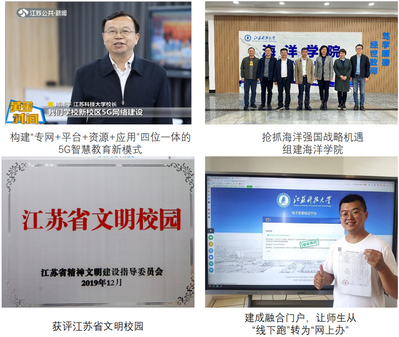 打造深蓝课程群、深蓝讲堂、深蓝科技文化节等为特色的“深蓝”育人品牌,形成以价值引领为导向的“系统化、精准化、特质化”的“三化”培养模式和“兴船报国”文化“五融合”的推进方式,积极构建校企育人共同体,多方协同汇聚教育合力,精准发力,发挥长流水、不断线的“滴灌效应”,在潜移默化中将家国情怀注入学生心灵,在润物无声中增强教育实效,系列成果被《人民日报》等主流媒体广泛关注报道。学校文化育人项目获江苏高校思想政治工作精品项目。