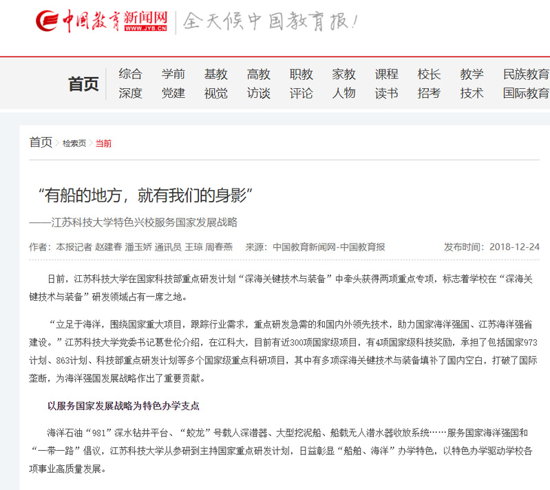 中国船舶报《江苏科大:乔迁五十载 又绿江南岸》(2020年12月4日)