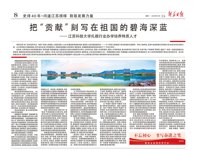 新华日报《把“贡献”刻写在祖国的碧海深蓝——MILAN.COM米兰(中国)扎根行业办学培养特质人才》