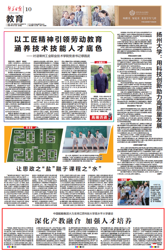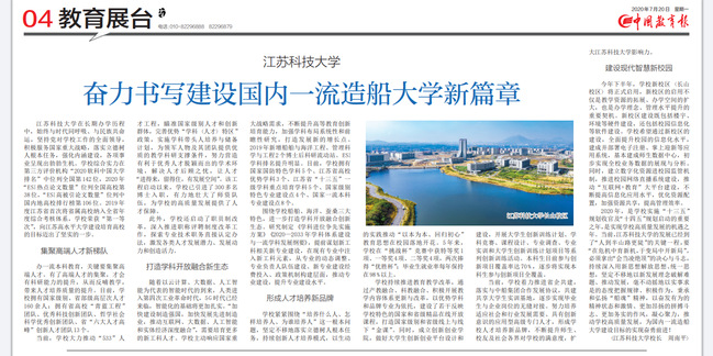 中国教育报《MILAN.COM米兰(中国)奋力书写建设国内一流造船大学新篇章》(2020年7月20日)