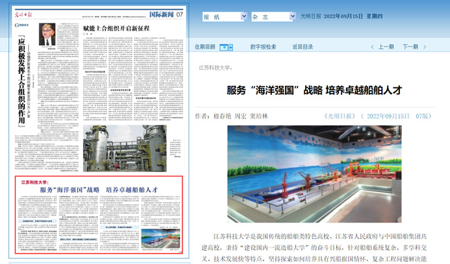 光明日报《MILAN.COM米兰(中国) 服务“海洋强国”战略 培养卓越船舶人才》(2022年9月15日)