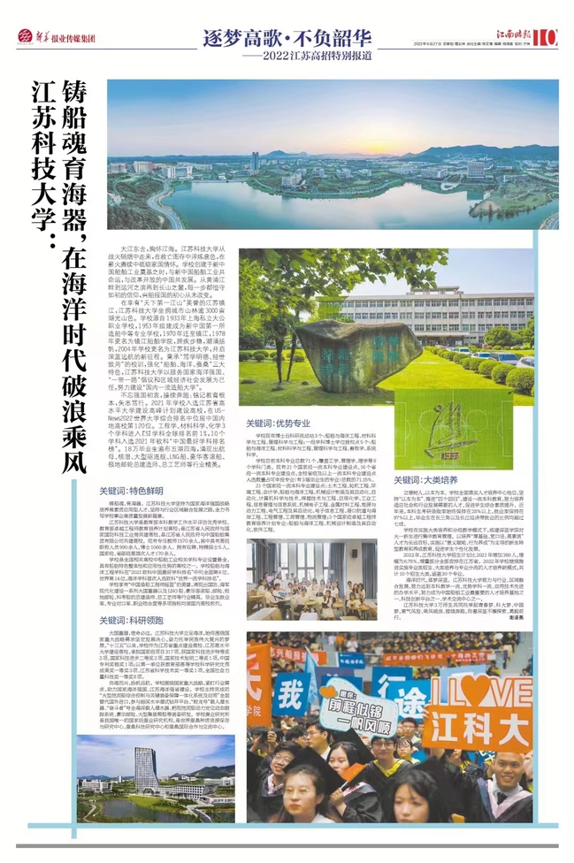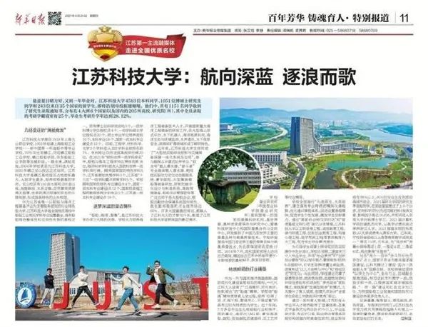 新华日报《非凡十年的江科大答卷 春潮澎湃风帆劲》(2022年10月21日)