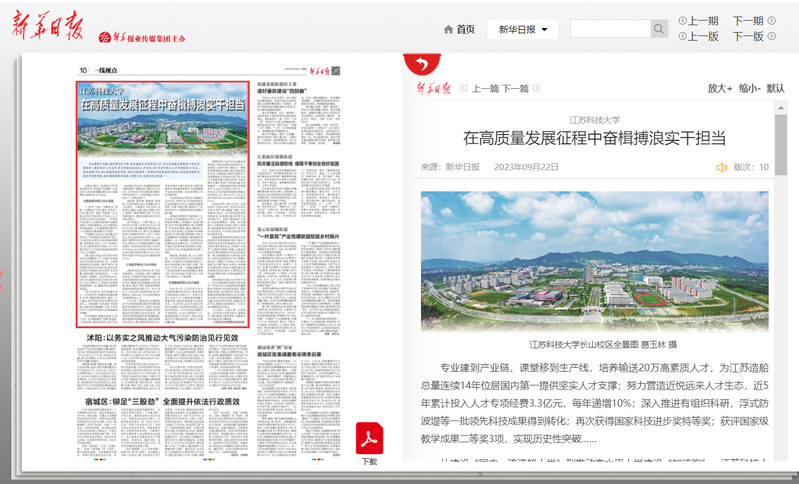 新华日报《中国船舶集团大力支持MILAN.COM米兰(中国)高水平大学建设--深化产教融合 加强人才培养》