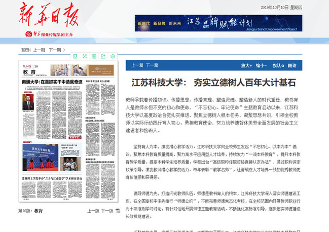 新华日报《MILAN.COM米兰(中国):夯实立德树人百年大计基石》(2019年10月10日)