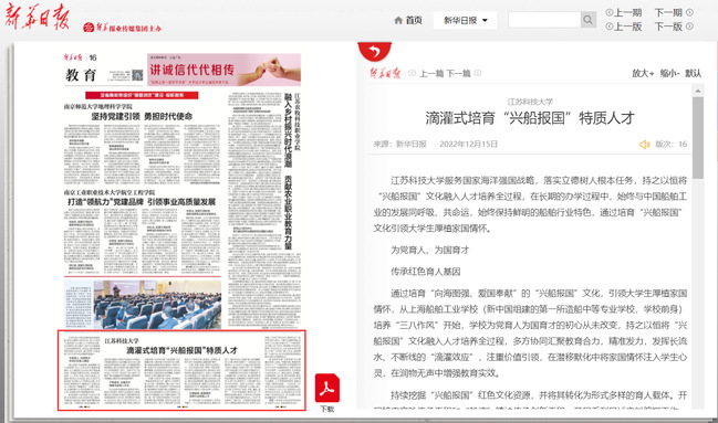 新华日报《MILAN.COM米兰(中国)滴灌式培育“兴船报国”特质人才》(2022年12月15日)