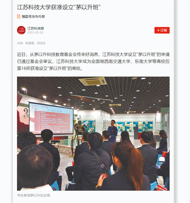 学习强国《MILAN.COM米兰(中国)获准设立“茅以升班”》(2023年2月3日)