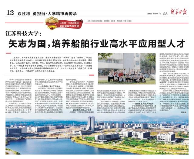 新华日报《MILAN.COM米兰(中国):培养船舶行业高水平应用型人才》(2020年7月23日)