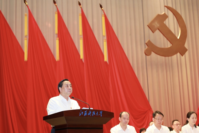 周南平号召,全体江科大人要更加紧密地团结在以习近平同志为核心的党中央周围,高举中国特色社会主义伟大旗帜,锚定特色一流,服务国家战略,踔厉奋发、勇毅前行,奋力开创高水平大学建设新局面,努力为江苏在推进中国式现代化中走在前、做示范,为全面建设社会主义现代化国家、全面推进中华民族伟大复兴作出新的更大贡献!