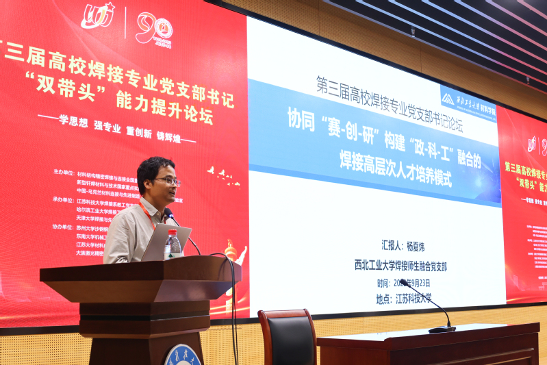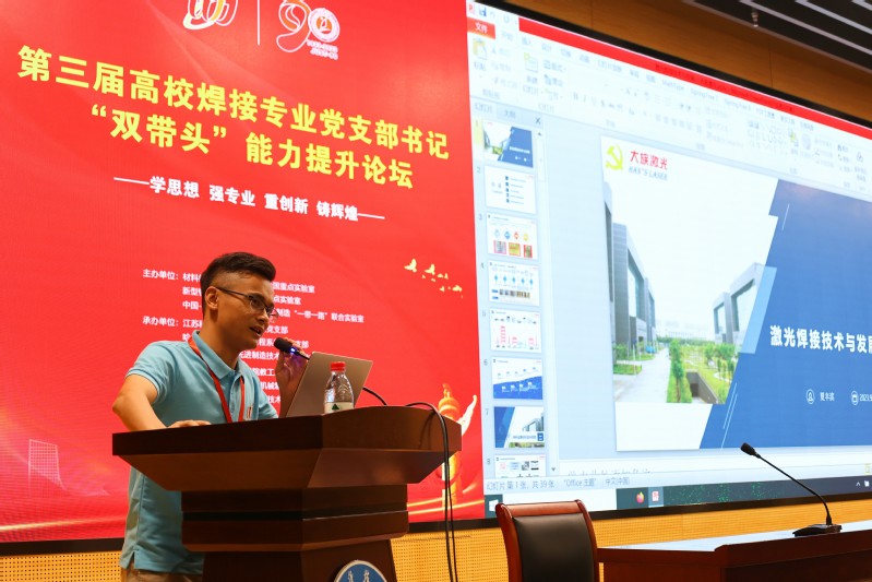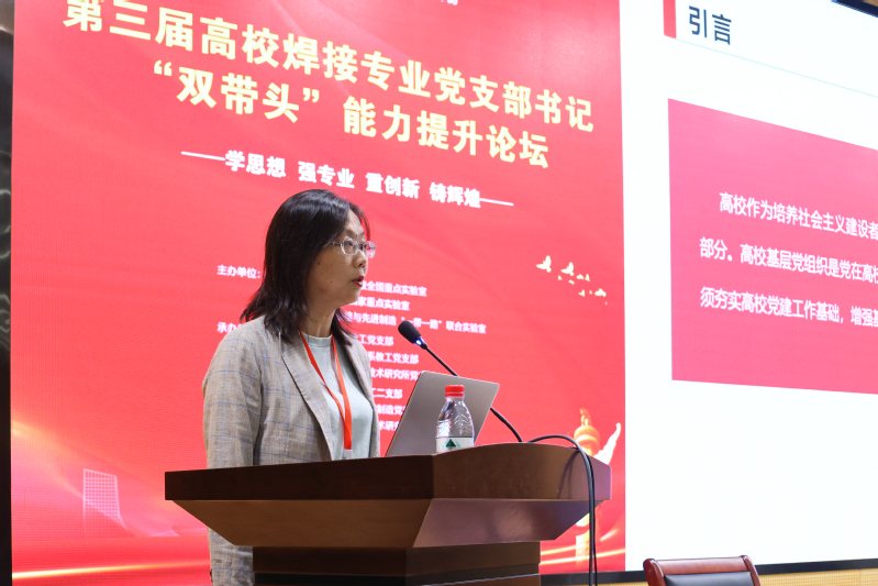 下午,镇江市委党校马克思主义理论教研室主任周秋琴教授以“坚持不懈用习近平新时代中国特色社会主义思想凝心铸魂”为题,围绕如何学习贯彻习近平新时代中国特色社会主义思想进行了系统深入的解读。江苏大学材料学院党委书记杨娟以《学思践悟党的二十大,“一轴三翼”谱新篇》为题,就夯实基层党建和焊接专业发展有机融合、互促提升,分享了江苏大学在党建方面取得的成效。MILAN.COM米兰(中国)材料学院党委书记李瑞峰介绍了材料学院通过五个引领三创联动,构建大党建联盟格局,打造亮点突出、特色鲜明的党建品牌,推出“五型党支部建设”,构建“头雁效应”三全育人体系,党员先锋突破多项焊接关键技术,党建引领专业发展的情况。西北工业大学焊接师生融合党支部书记杨夏炜以《协同“赛-创-研”,构建“政-科-工”融合的焊接高层次人才培养模式》为题,针对焊接创新平台的建设发展助力焊接人才培养进行了详细介绍,旨在打造焊接人自己的创新平台,为我国焊接专业和事业的发展及能力提升激发创新源泉。大族激光集团有限公司焊接研究院长夏丰滨介绍了激光焊接技术研究发展情况,鼓励高校与企业联合,推进“产学研”协同发展 。