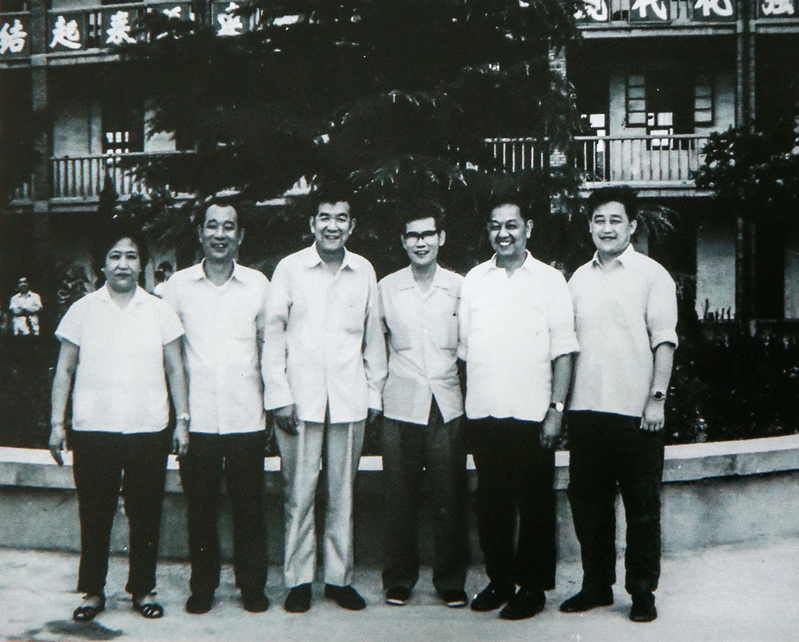 1982年6月,中船总公司领导和学院领导合影(左一刘东明、左三杨槱、左五肖流)