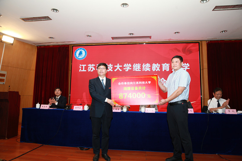 中国船舶集团有限公司第704研究所张金钊主任、中船澄西高级技工学校副校长孙健以及计算机学院副教授左欣分别作为企业代表、校外教学点代表、优秀校友代表发言。会上还举行了捐赠仪式,潘锦全副校长代表学校接受了合作单位捐款和捐物,仲崇光院长向各家单位负责人颁发了捐赠证书。