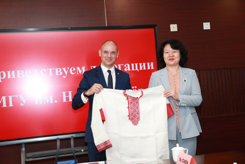 会谈双方就未来的合作与发展方向达成了共识。会谈结束后,中俄两校互赠了礼物,并合影留念。
