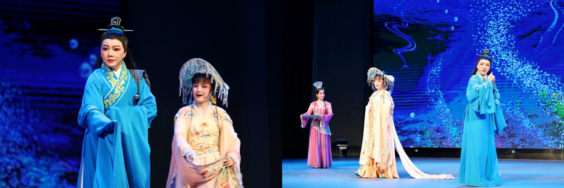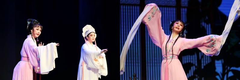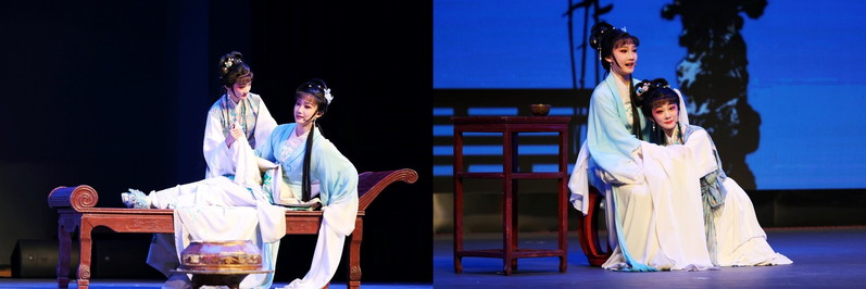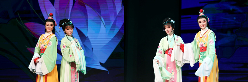 《梁祝·楼台会》节选自脍炙人口的经典爱情故事《梁祝》。在这一幕中,梁山伯前往祝家,却得知祝英台已被父亲许配马太守之子马文才。二人在楼台相会,互诉相思之情后伤心分手。演员细致的演绎与婉转的唱腔让观众不禁为之潸然泪下。