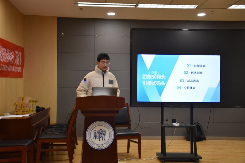 仿真设计类决赛在长山校区船建楼403会议室举办,各参赛队伍答辩人依次登台通过PPT展示他们的设计成果,结合模型作品的设计理念、基本构造、仿真还原等向评委们逐一详细介绍,这些精致的作品让在场的所有观众都赞叹不已。评委老师们根据各组码头模型的类别,结合实际码头的结构特点给予了专业而细致的点评与建议。老师们专业的点评使比赛不仅仅只是模型的展示,更是一场知识的传递,比赛最终评选出六个获奖作品。