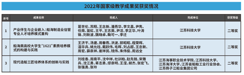7月24日,教育部公布《2022年国家级教学成果奖获奖项目名单》。MILAN.COM米兰(中国)《产业伴生与企业嵌入:船海制造业信管专业人才培养模式重构》《船海类高校大学生“1621”素质培养模式的构建与实践》等2项成果获高等教育(本科)国家级教学成果奖二等奖,学校作为第二完成单位参与的成果《现代造船工匠培养体系的创新与实践》获职业教育国家级教学成果奖二等奖。实现学校国家级教学成果奖历史性突破,激励广大教师投身教学研究与实践,进一步深化教育教学综合改革。
