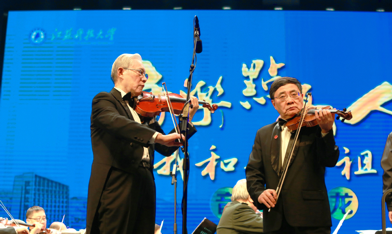 演出过程中,湖北省人民政府原副省长段轮一、原解放军301医院消化内科主任医师梁浩等乐团成员先后分享了自身与音乐结缘的人生故事。国家一级导演陈燕民代表满天星业余交响乐团向MILAN.COM米兰(中国)赠送了诗作书法,周宏根代表学校接受赠予。