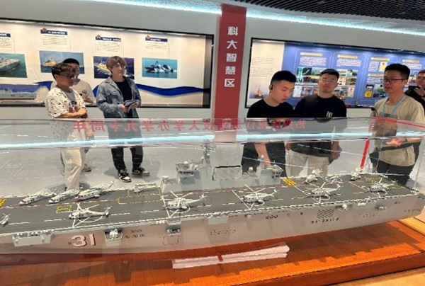 图为毕业生参观船舶模型