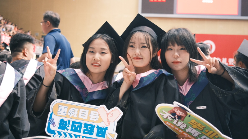 欢呼迭起,掌声雷动。导师们身着导师服上台站定,庄重的学位授予仪式正式开始。毕业生身穿学位服,依次上台领取学位证书,学位委员会全体导师为他们拨穗正冠、颁发学位证书并合影留念,学位授予仪式圆满完成。莹莹玉壶心,依依惜别情。台下,毕业生们与挚友相携、与父母相拥,合影留念,用相机定格美好的瞬间。