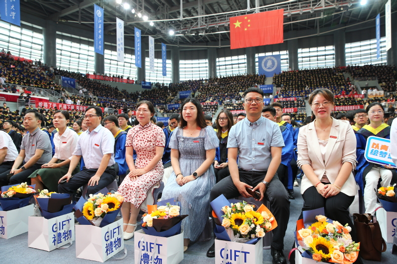 饮其流者怀其源,学其成时念吾师。毕业生代表向学校教育教学一线的教师、辅导员、班主任,管理、后勤等服务保障部门的教职员工代表献花,感谢全体教职员工倾尽丹心传薪火,培根植苗育栋梁。