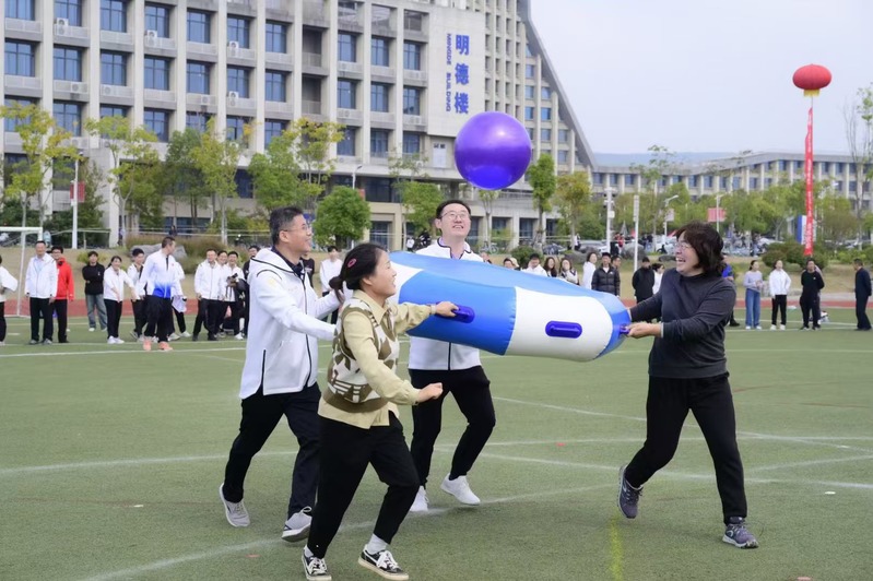 开幕式结束后,各项比赛继续如火如荼地进行。田径场上,运动员们奋力冲刺,每一次的起跑都凝聚着汗水与希望;跳远沙坑旁,选手们一次次跃起,挑战自我,刷新纪录;团体趣味比赛中,队员们默契配合,通过不同的项目锻炼身体的协调能力;而跑道一旁熙熙攘攘的人群则为自己支持的选手呐喊助威!在各项赛事的运动场地中,处处可见活力满满的江科大人。